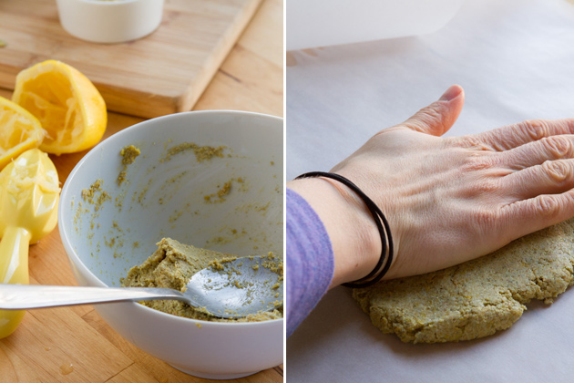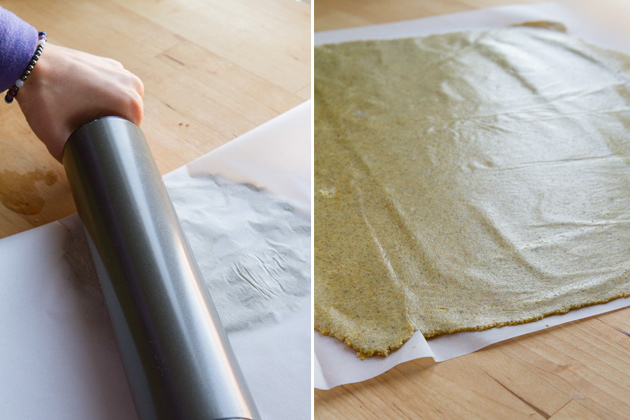 Just add everything to a bowl, stir, roll and slap on some parchment paper. The dough will be very similar to cookie dough – easy to roll out.
