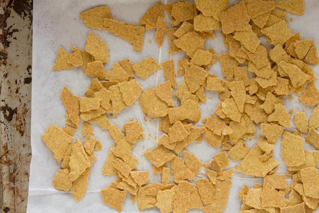 Place in the oven, cook for an hour, then remove the parchment. Break up into random pieces and place back in the oven.