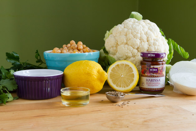 I walked home with my new ingredient tucked away in my jacket pocket, started up the computer and searched Pinterest for some harissa inspiration. The first recipe I found was a roasted cauliflower salad created by Adrianna from A Cozy Kitchen. The second was another roasted cauliflower salad from Karen at Family Style Food. Each recipe wasequally as beautiful, so I combined them, removed the cheese, and simplified things a touch.