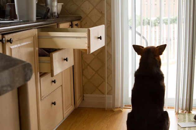 Whether I’m baking up fish, or throwing a simple pasta in the oven, Lexy keeps an eye on things in her little spot in the kitchen.