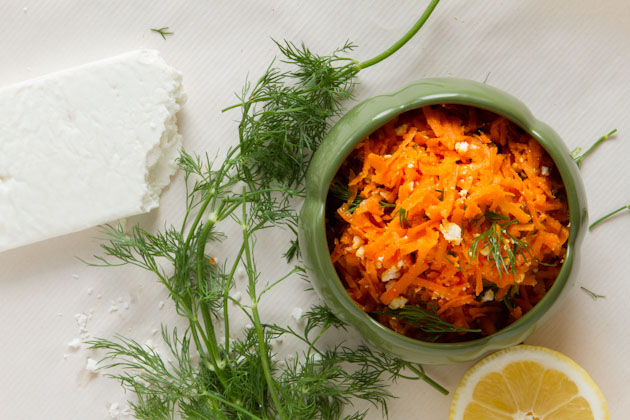 Light and refreshing salad with carrots, dill and goat feta. Simple and delicious!