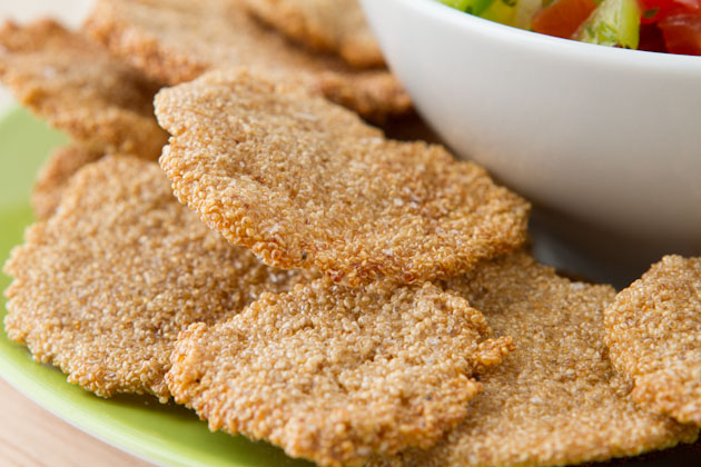 I made the chips with something… interesting. It’s called amaranth. Have you heard of it?