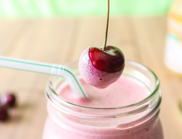 A creamy vegan smoothie bursting with fresh cherries, super foods, and protein.