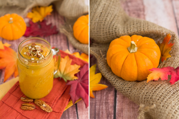 Creamy pumpkin smoothie with fresh oranges, yogurt and vanilla.