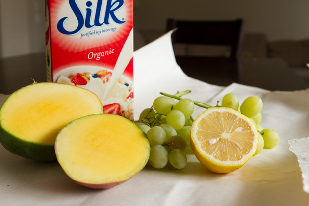 I used Silk soy milk for this smoothie. It’s one of the only non-GMO soy milks I’ve been able to find at our local grocery store. They have a couple of varieties – vanilla, regular and unsweetened. The unsweetened is pretty blah on it’s own, but added to a smoothie? It’s perfect!
