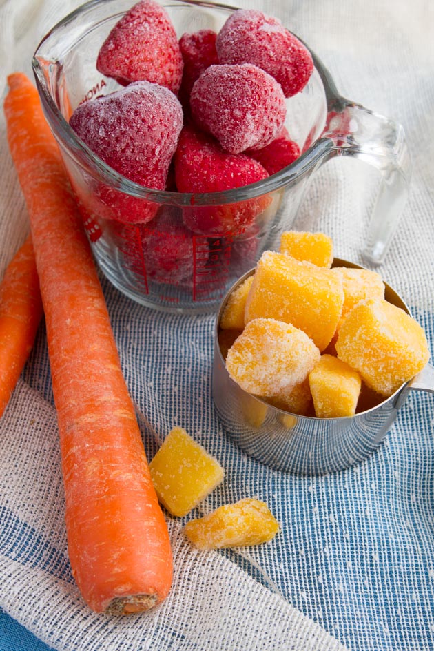 I used frozen mango and strawberries for this recipe. If you’re going to go this route, make sure that you defrost them before you use them for this recipe.