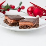 Lightly sweetened chocolate-layer bars—a healthy hemp-seed base and melted chocolate coating, sandwiched between a dense layer of cranberry cream.