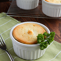 12. When complete, place ramekins on a large baking sheet, brush the egg whites over top, and bake in preheated oven for 30 minutes, or until tops are golden and crisp.
