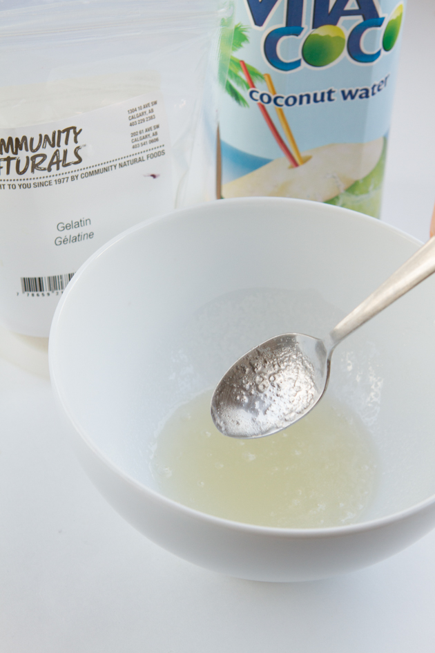 Allowing the gelatin and cold coconut water to sit in the bowl is important.