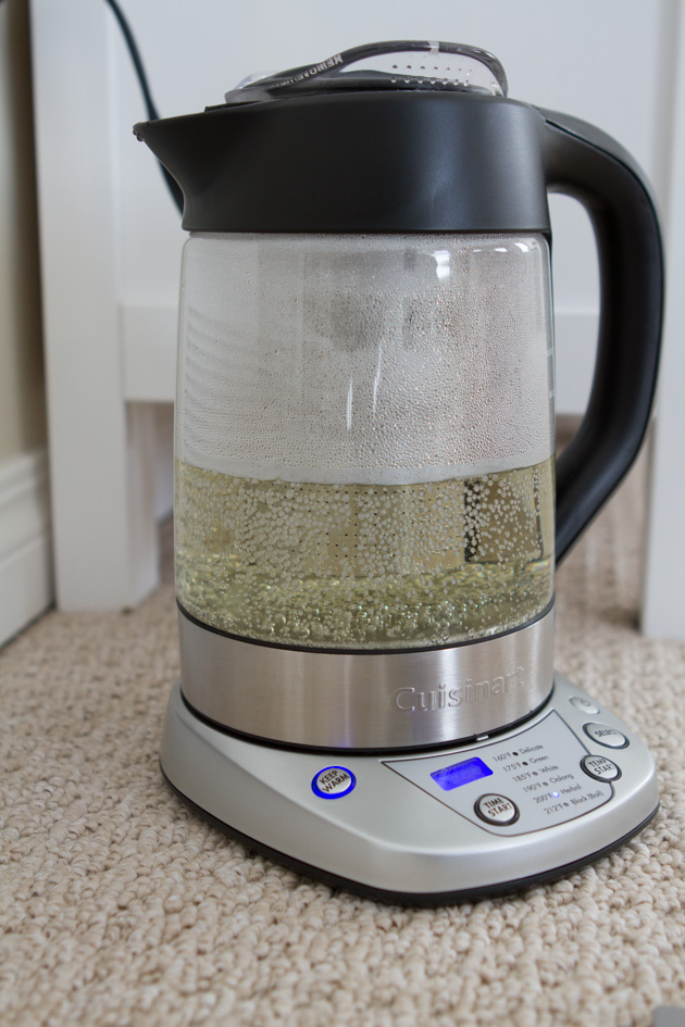 Because I’ve enjoyed each and every Cuisinart appliance I’ve ever purchased, I went with the Cusinart PerfectTemp Programmable Tea Steeper & Kettle. The reason I chose it over the Cuisinart PerfectTemp Cordless Kettle was because the tea steeper could do just that – steep loose leaf tea, which, I have a lot of.