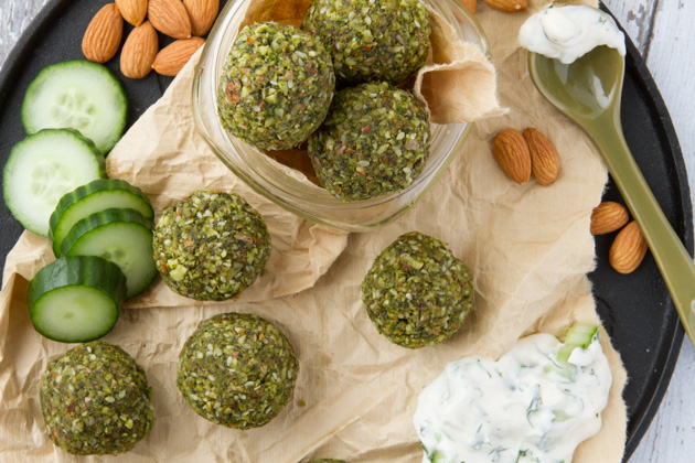 Ground nuts, seeds and fresh herbs make the perfect texture and flavor in these bean-free, low-carb, and keto falafel balls.