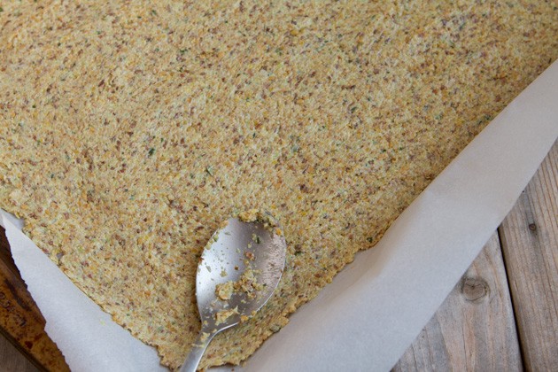 7. Bake for 2 hours. Halfway through baking, remove the parchment paper and flip the crackers. The baking time will vary greatly on how thick/thin you make the crackers. You want the end result to be crisp, crunchy with no moisture left.