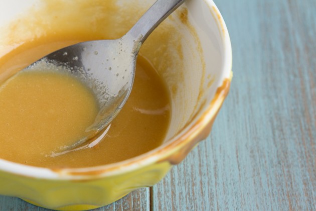 Once the fats have heated up, we need to add them to a bowl with your protein and stir it around, especially if you’ve chosen to use gelatin.