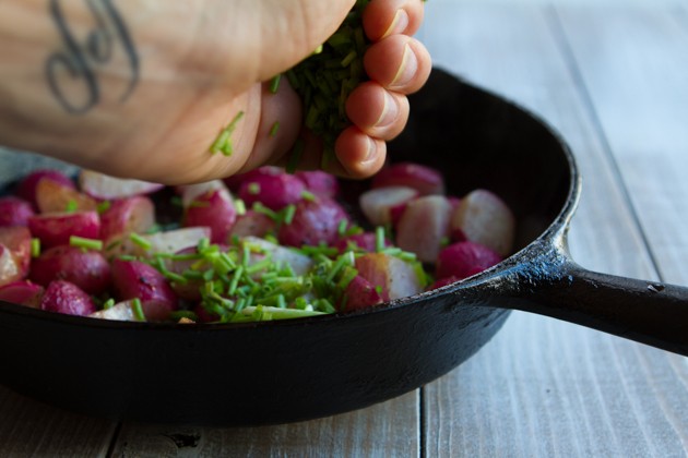 Roasted Radishes with Chives, Thyme and Rosemary (paleo, low-carb + keto)