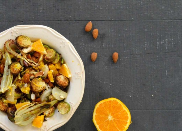 This dish combines brussels sprouts and orange with roasted fennel, shallots, and almonds for the most delicious dish.