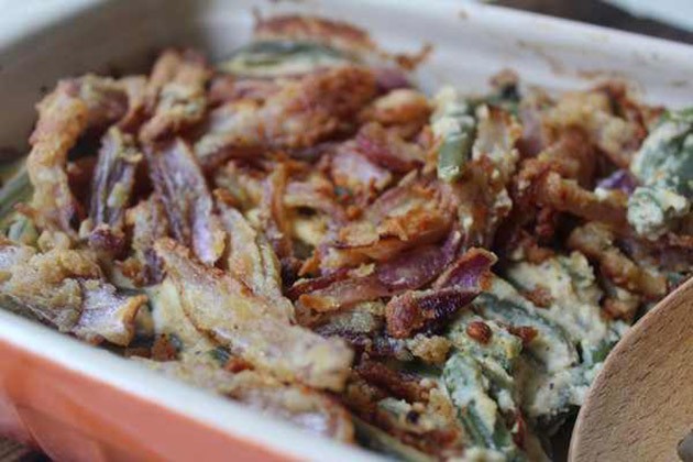 Crispy onions, creamy beans, all baked together to create some weirdly magical Americana holiday dish. This version plays a little more respect to each ingredient- no overly fried onion, no “too soggy” beans. Everything in a delicate balance.