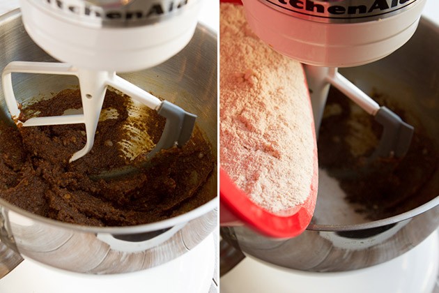Wet ingredients, I mixed mine in my stand mixer, but anything will do the trick. Once it’s fully mixed, add the dry ingredients.