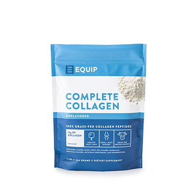 Equip’s Complete Collagen is made from one ingredient: 100% grass-fed collagen peptides, that’s it! This collagen is completely flavorless, easily mixes into hot or cold liquids, and does not gel up like gelatin. It’s sourced from North American beef, so it does not contribute to the deforestation that’s happening in Brazil with other cattle. It’s less expensive than other well-known brands and it’s accessible to Canadians. Win!