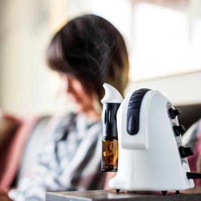 - There’s the Aroma Express that covers 600 sq. ft, is AA battery-powered and AWESOME for travel – fits perfectly in my suitcase