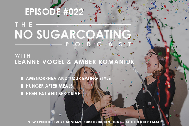 Keto podcast answering your questions on how what you eat affects your menstrual cycle, how to combat after-meal hunger, and elevated sex drive while eating high-fat.