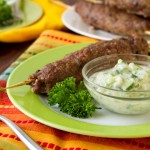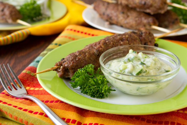Delicately spiced beef kabobs sprinkled with sweet currants, served up with a side of fresh dairy-free tzatziki.