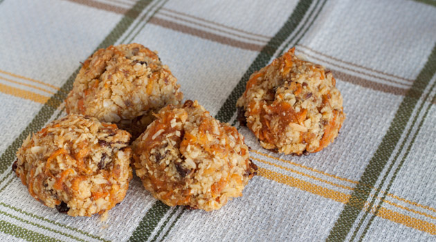 Macaroon style cookies with carrot cake flare. Made entirely free of grains, dairy and eggs.