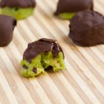 Frozen cubes of vanilla-flavored avocado coated with dark chocolate.