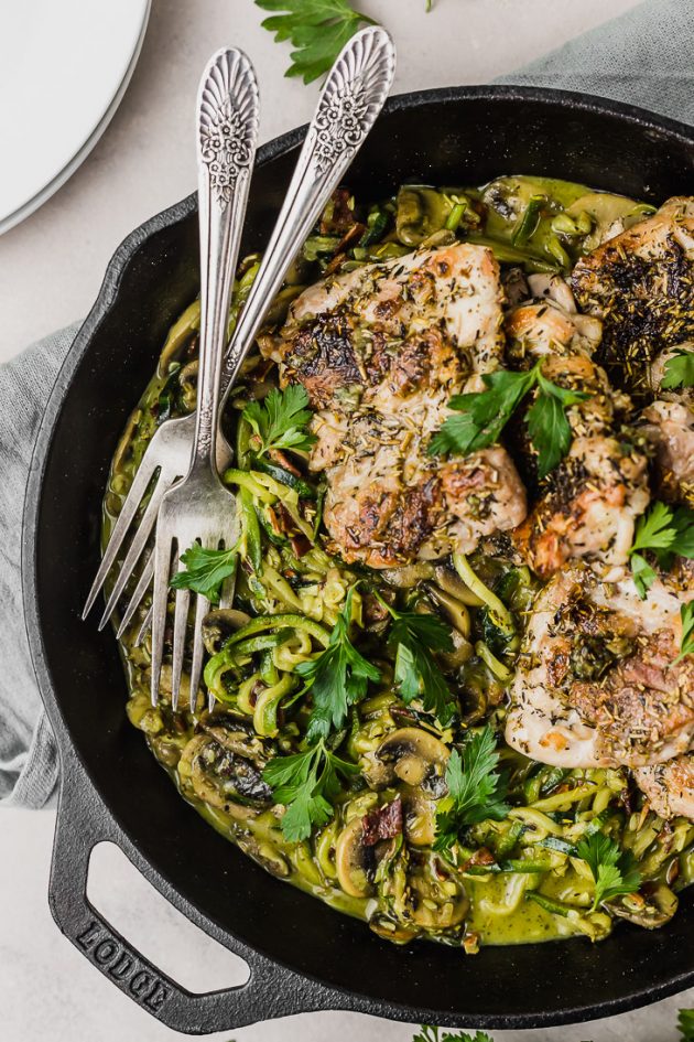 Delicious low-carb noodles enveloped in a dairy-free mushroom sauce.