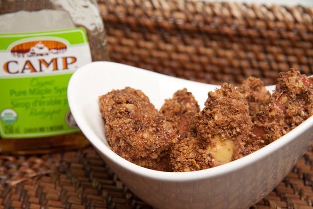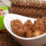 Apple slices coated with crushed walnuts and flax seed. Baked until crisp. Gluten-free, grain-free and delicious!
