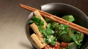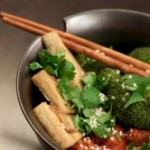 A different take on the traditional stir-fry with baked vegetables instead of fried. The tofu adds crunch and the rice gives the dish a warm coconut flavour.