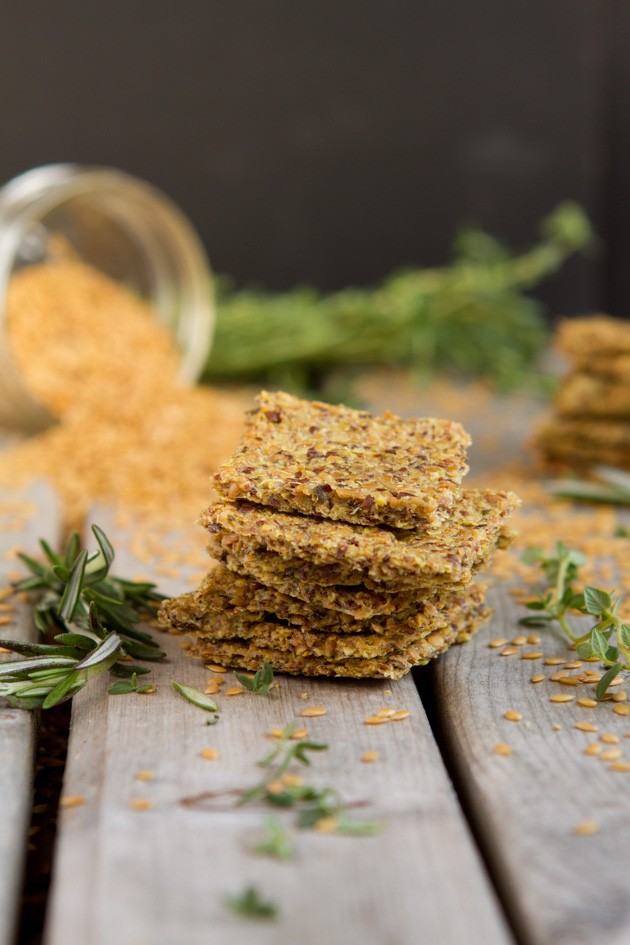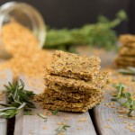 Crunchy, grain-free flax crackers made with ground flax seed, celery and fresh herbs. Baked in the oven until crisp.