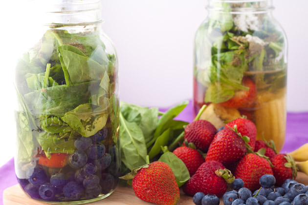 Prepare these smoothies the night before for quick smoothie making. Great for leftover fruits and veg that you need to clean your fridge of. Just throw it in and hope for the best!