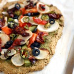 It’s easy to make free-form crusts of any size with this base by simply spreading the dough out on parchment-lined cookie sheets. If you prefer one larger pizza, however, simply pat the crust into a large (14 inch or 35.5 cm) pie pan and bake an additional 10 minutes before adding your toppings.
