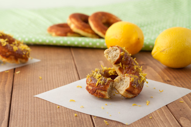 Lemon doughnuts made with a combination of coconut and almond flours, xylitol and apple sauce.