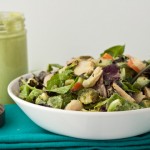2. Combine all ingredients in a big bowl, topping with green goddessphere dressing and stirring to coat.