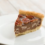 Low-carb chocolate pecan pie free from sugars and syrups. Entirely sugar-free, grain-free and dairy-free. Paleo almond flour pie crust and chocolate pecan pie filling made creamy with zucchini!