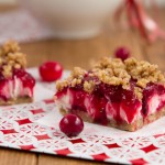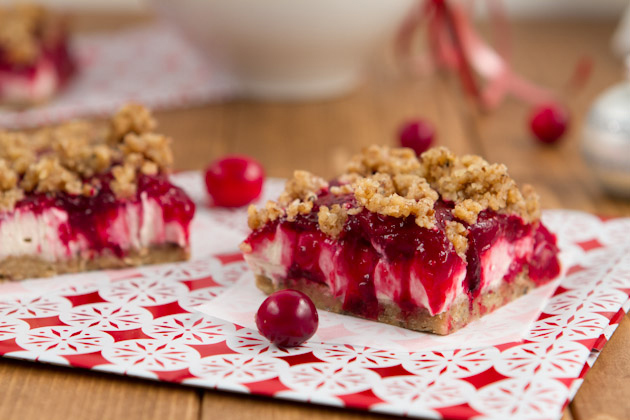 Dairy-free, gluten-free cheesecake made with homemade vegan cream cheese layered between a grain-free base cookie base and a homemade cranberry orange sauce.