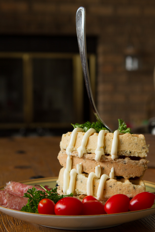 Savory, dense and filling “corn”bread waffles without the corn! Paleo, low-carb, dairy-free and corn-free. Perfect for breakfast, lunch or dinner. Top with your favorite sandwich fillings.