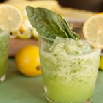 A healthy slush drink made with crushed ice, fresh basil, lemon and lime.