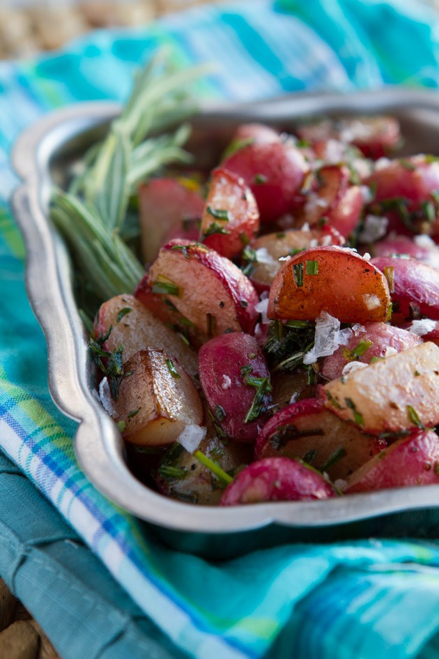 A low-carb, paleo version of roasted potatoes. Dusted with fresh herbs and sauteed in tallow.