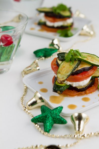 A warm salad stacked with grilled veggies, soft goat cheese and homemade balsamic maple dressing.