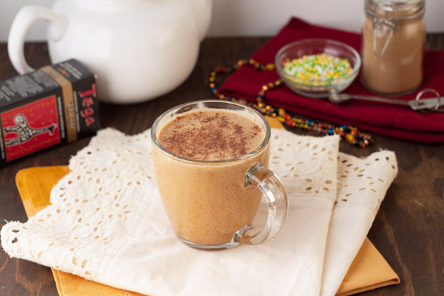 Switch out the black tea with naturally caffiene-free rooibos tea so you can enjoy a masala chai at any time of the day. Not only is rooibos naturally caffeine-free, but it’s excellent for your digestion, and has a high amount of antioxidants.