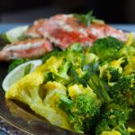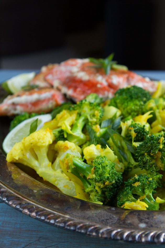Keto vegetables enveloped in a rich, creamy, dairy-free, keto sauce. Topped with grilled salmon. A quick and easy keto meal the whole family will love.