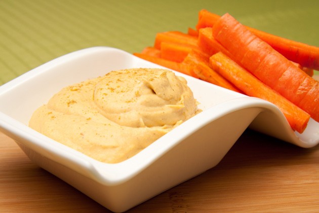 Healthy hummus recipe made with pureed roasted vegetables and chickpeas.