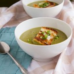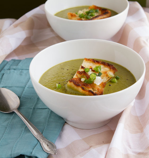 Ultra smooth soup made with caramelized onions, spinach and soft goat cheese.