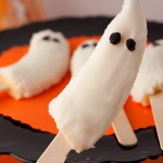 Playful frozen ghost pops made with banana, coconut butter, and dried currants!
