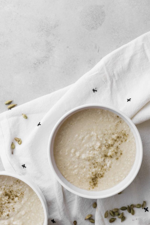 Hemp-based keto breakfast porridge with notes of vanilla, white chocolate, and cardamom.