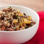 Chilled wild rice salad with pecans and a sweet garlic ginger dressing.