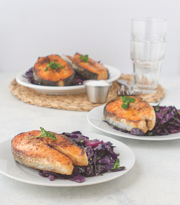 There’s something so summery to me about salmon … it’s just so fresh, and paired with this sweet cabbage, it’s a beautifully colorful keto meal. I love this recipe because you can bake the salmon steaks in the oven or on the grill (wrapped in aluminum) AND the balsamic based dressing sweet cabbage pairs well with any protein — chicken thighs, flank steak, you name it! Get this plus 125+ other awesome keto recipes in The Keto Diet, my paperback!
