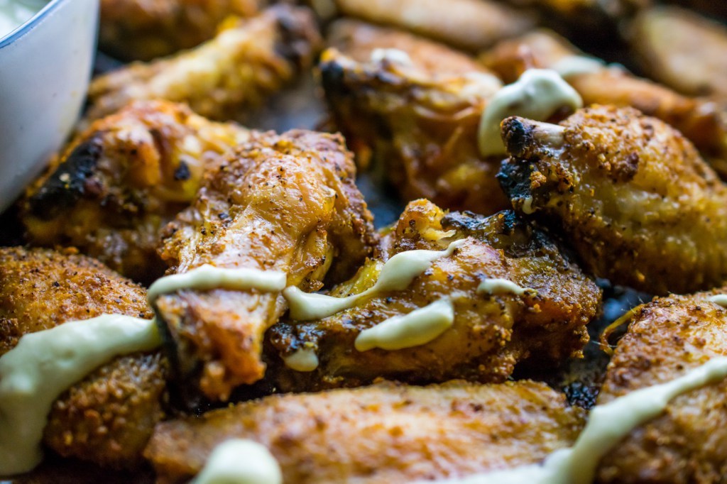Crispy baked wings — that’s a real thing! These wings are perfectly seasoned with just a bit of zing, served with a creamy dairy-free garlic sauce. Crispy, keto, and delicious!